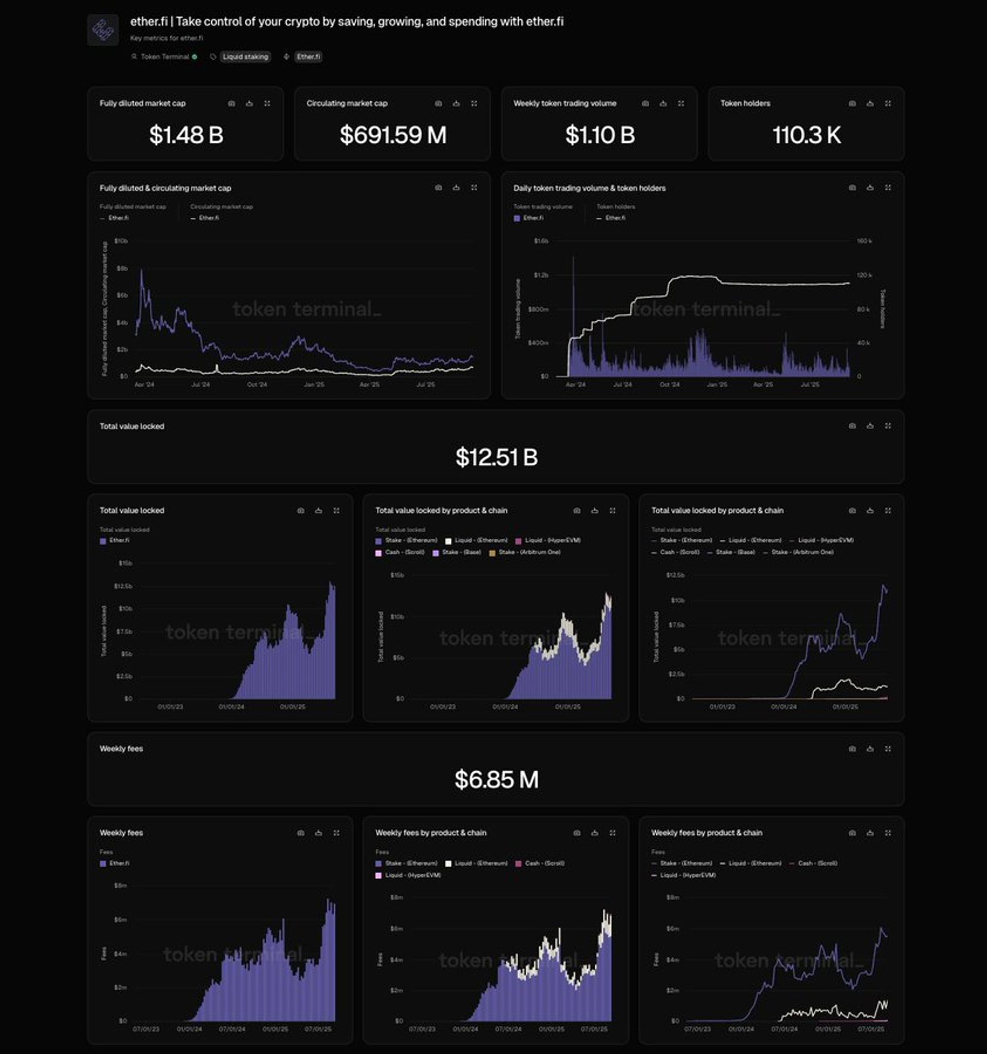 “ By partnering with Token Terminal, we’re able to benchmark our performance against the competition in a fair and accurate way. Having a real-time dashboard on Token Terminal is not only a great tool for our team, but for all Ether.fi stakeholders.”